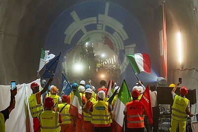 On 18 September 2025, the first of three tubes of the Brenner Base Tunnel was fully broken through, connecting Austria and Italy for the first time via the exploratory tunnel. The milestone was celebrated by over 1,000 guests, including the EU Commissioner Apostolos Tzitzikostas, Italian Prime Minister Giorgia Meloni, Austrian Chancellor Christian Stocker, and numerous representatives from politics and the tunnel construction industry. At 64 km, the Brenner Base Tunnel will become the world’s longest railway tunnel, shifting millions of tons of goods from road to rail and supporting sustainable European transport.